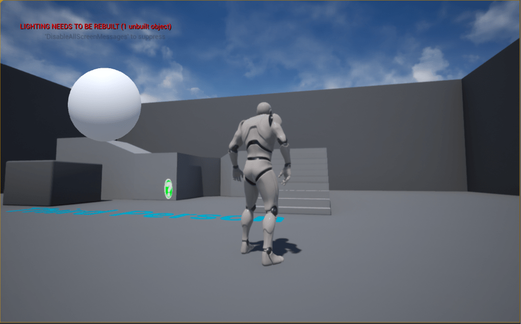 - Press play. You should now see the sphere being rendered in the top left of the screen. If you aren’t seeing anything, go through and make sure that all of the materials, blueprints, and widgets are compiled and try again.