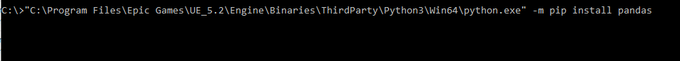“C:\Program Files\Epic Games\UE_5.2\Engine\Binaries\ThirdParty\Python3\Win64\python.exe” -m pip install pandas